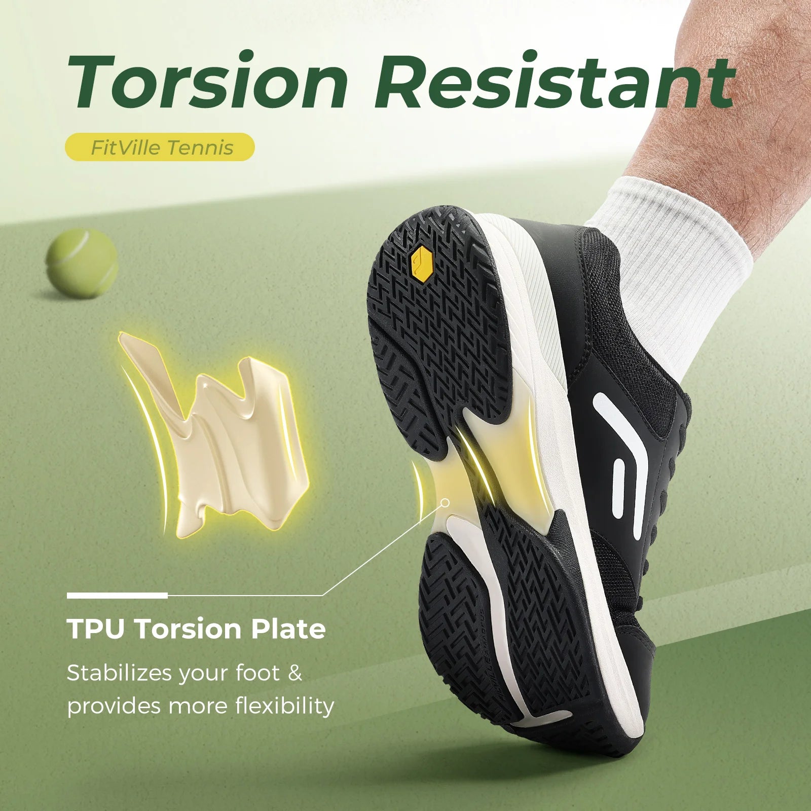 The Amadeus Pickleball & Tennis shoe benefits from FitVille's iconic "wide toe box" design. The increased space for your forefoot ensures you're toes are given enough room to breath while you are on the court.