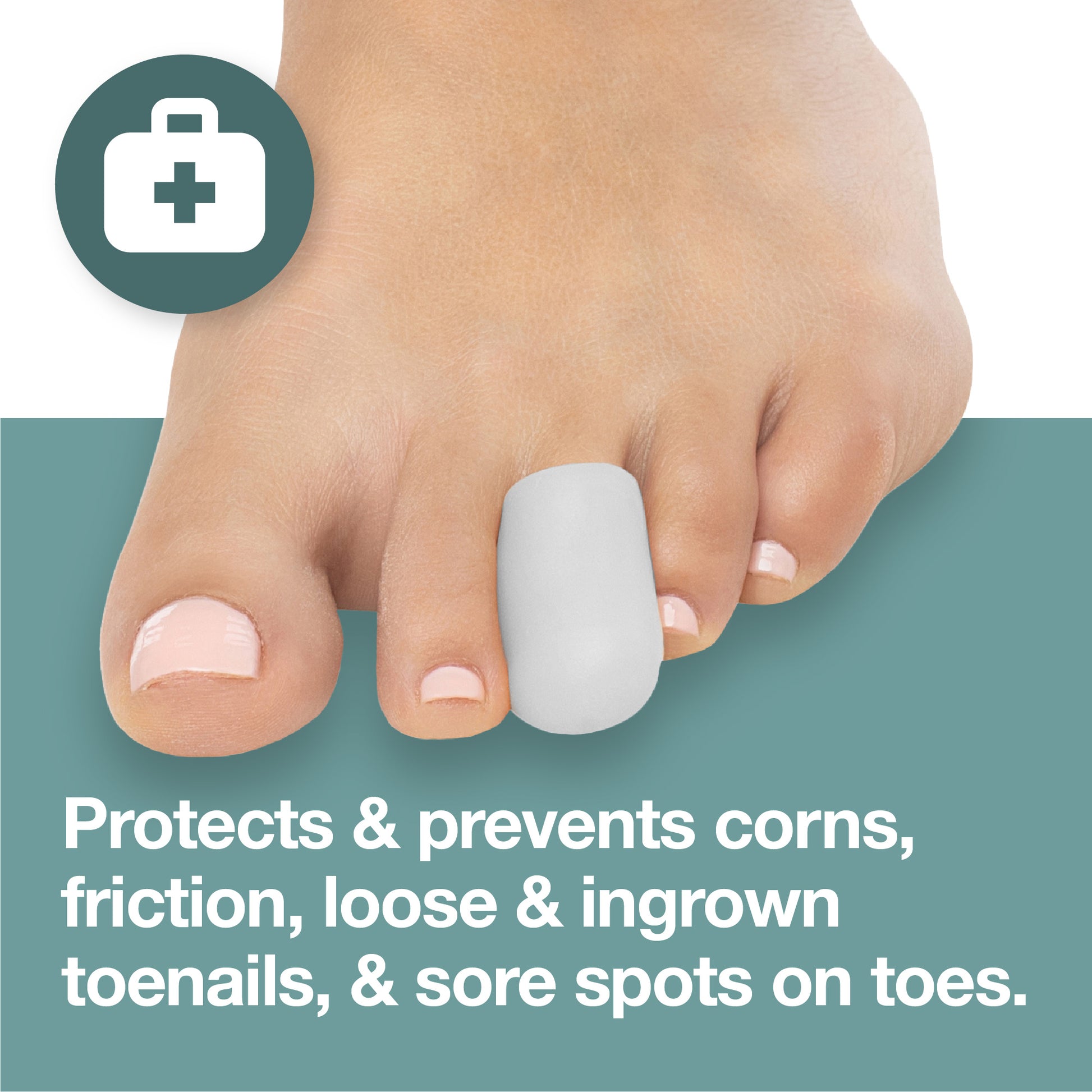 These reusable gel toe caps offer relief from missing or ingrown toenails, corns, blisters, hammertoes and more. Choose from two different sizes depending on your needs.