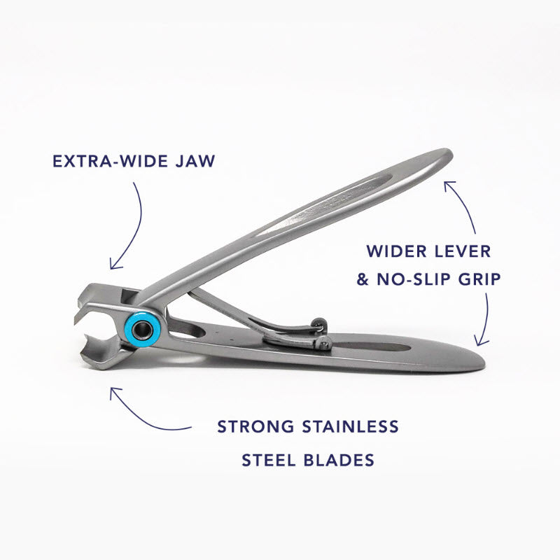 Clip Clip™ is a premium nail clipper that makes your perfect nail shape easy to achieve! Strong stainless-steel blades, sharp honed edges and a deep jaw allow for perfectly precise clips (even through thick nails), while a wider lever creates a comfortable, no-slip grip. The accompanying pointed steel file is specially shaped to help clean underneath nail edges and to safely push up cuticles.