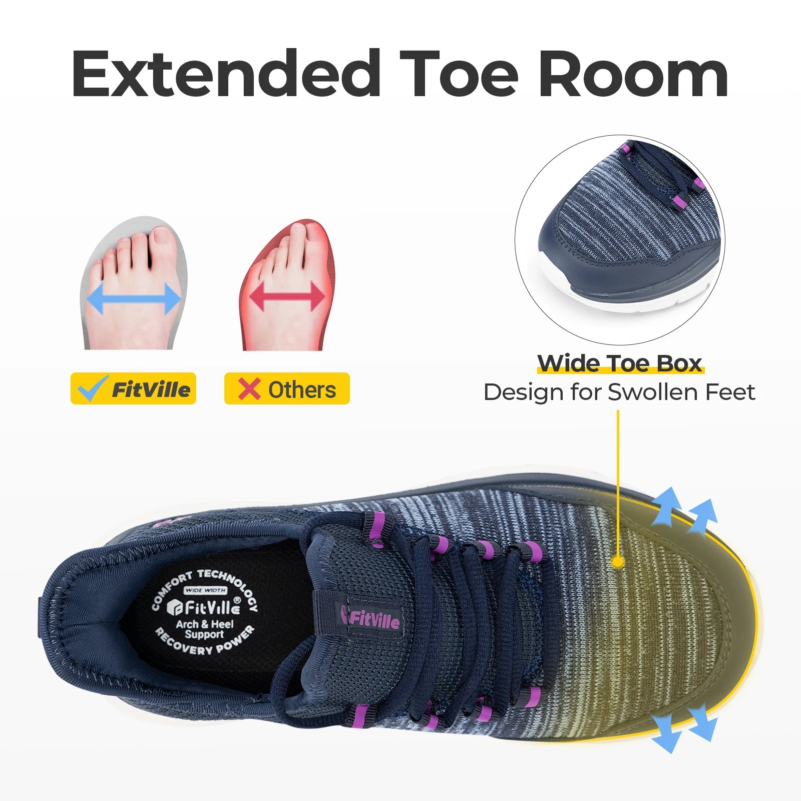 FitVille Comfort+™ technology puts comfort into motion. This advance technology follows the contour of your feet to enhance your movement and overall comfort. Ergonomic designed, the Stride Core will give you an amazing footwear experience.