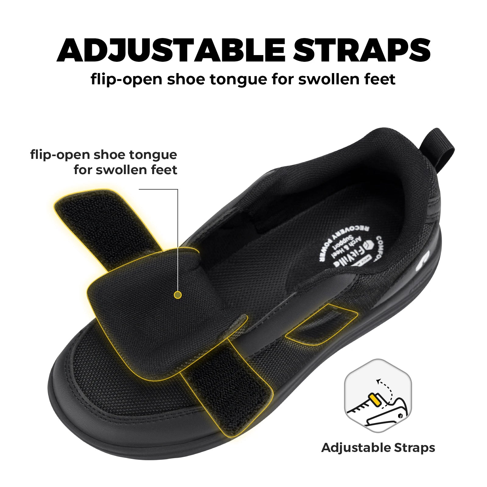- Easy On & Off: The adjustable straps allow for precise adjustments for high insteps and/or swollen feet.
