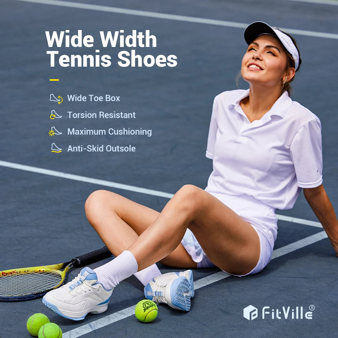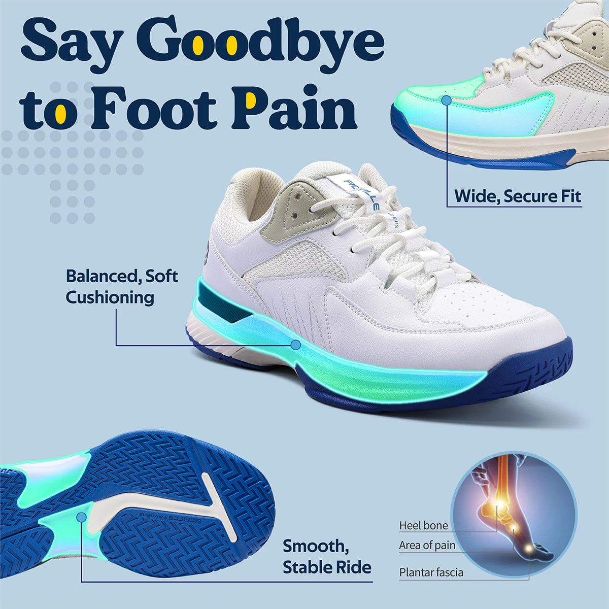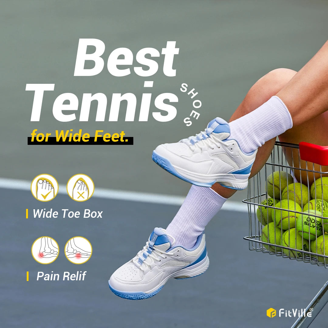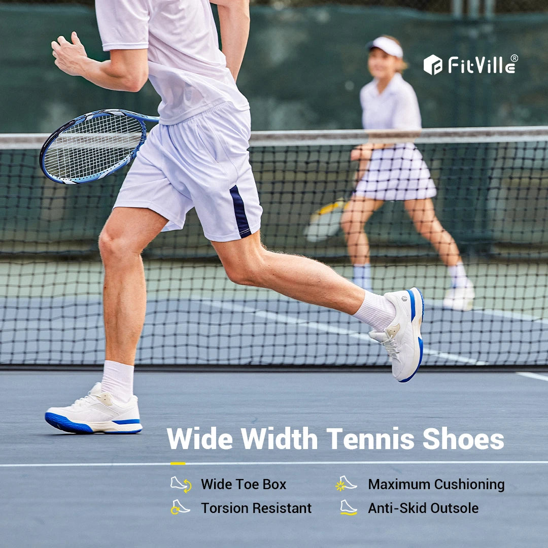 The Amadeus Pickleball & Tennis shoe benefits from FitVille's iconic "wide toe box" design. The increased space for your forefoot ensures you're toes are given enough room to breath while you are on the court.