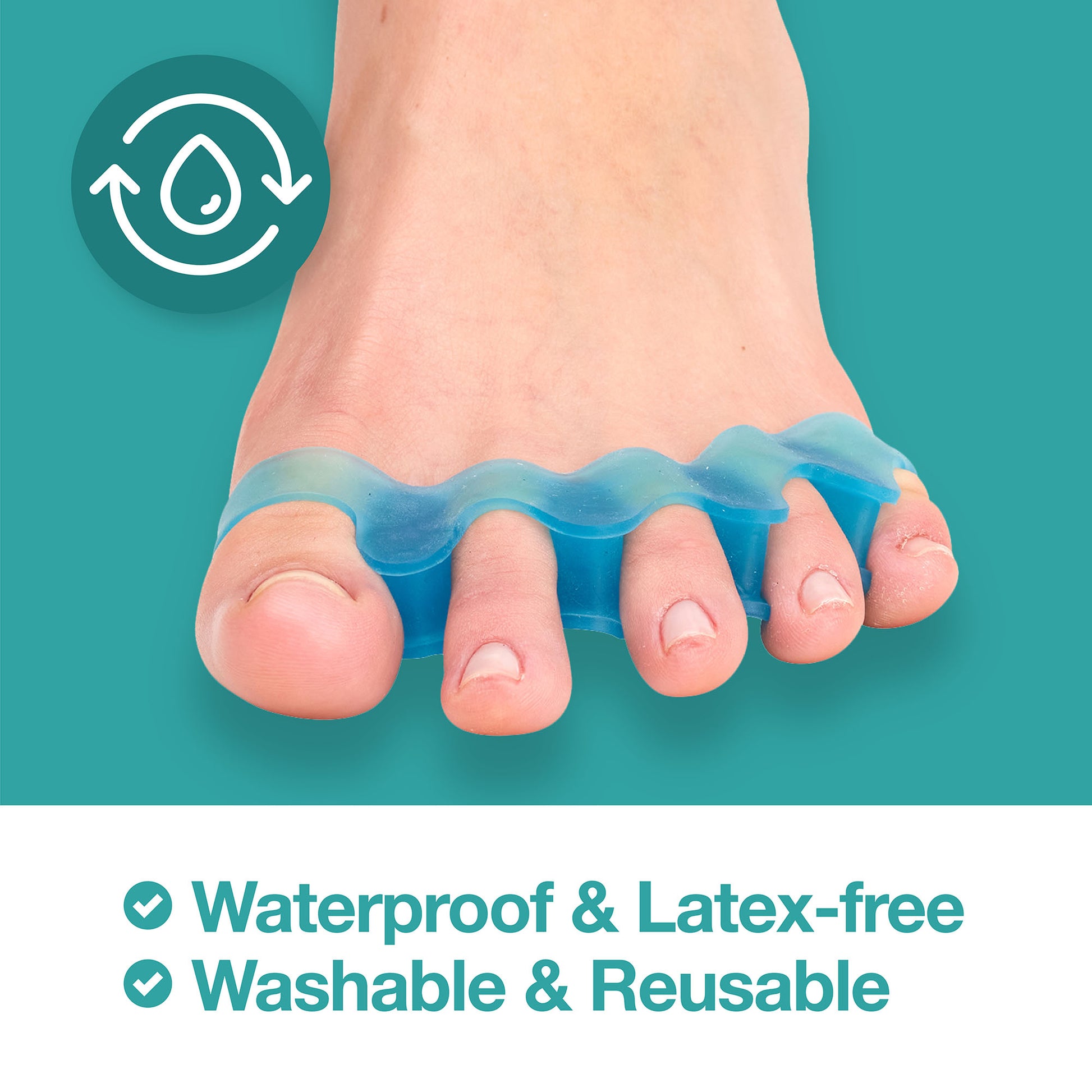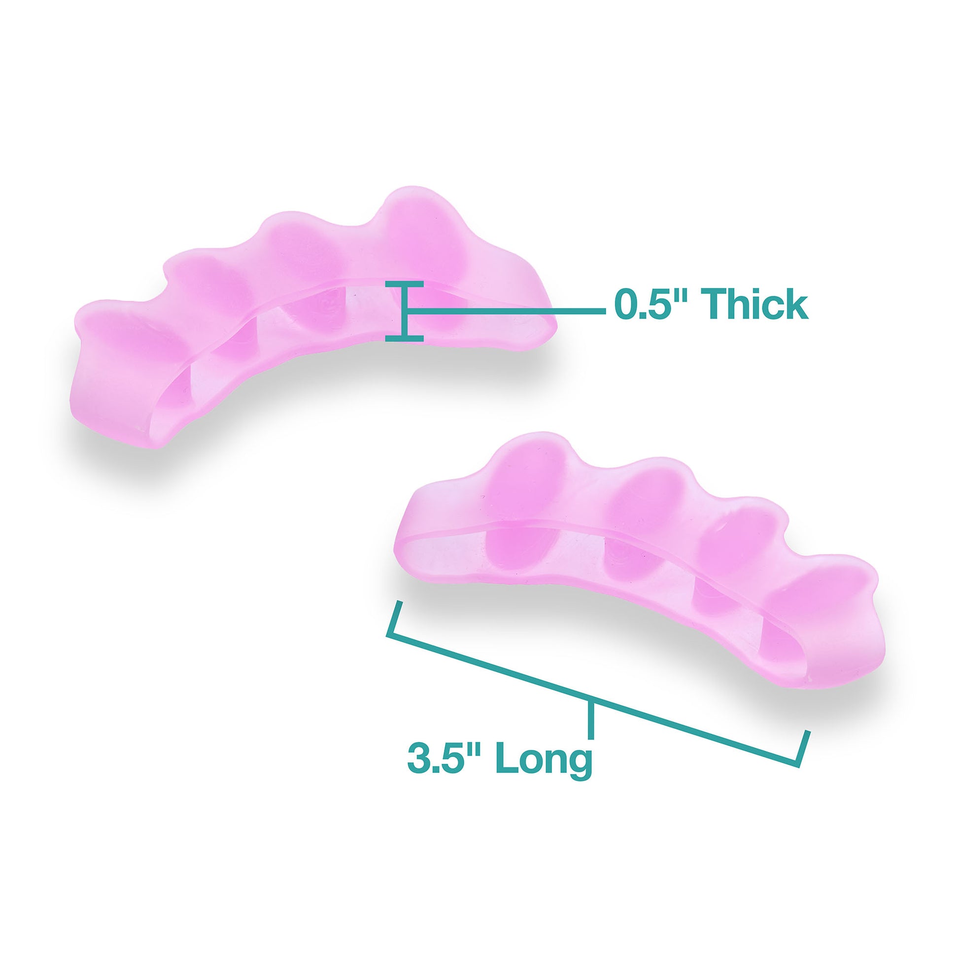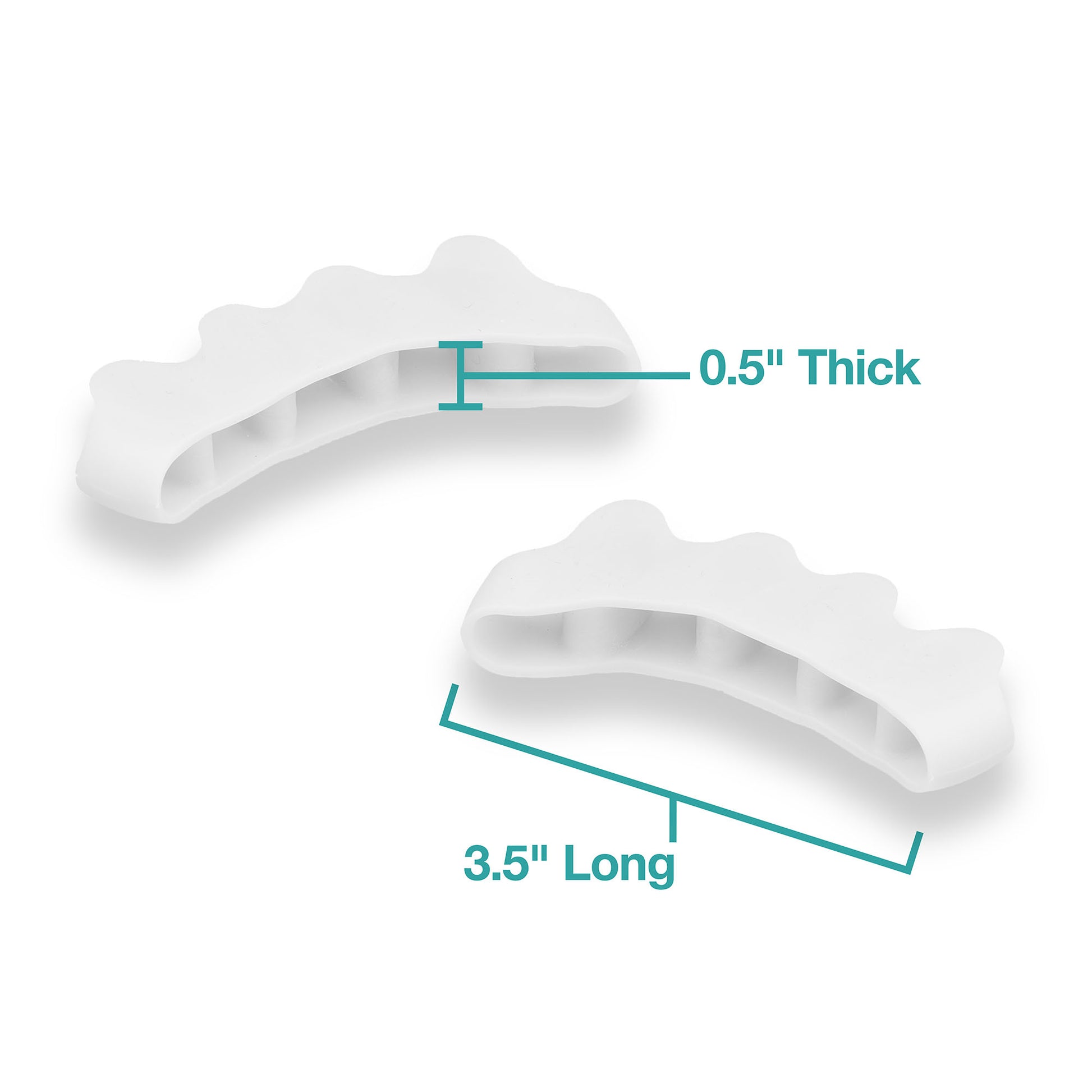 - Long-Lasting Quality: Made with BPA-free, flexible, medical grade gel, our toe separators mold to the shape of your foot and will fit most size toes and feet for both men and women. We recommend wearing the "all toe" separator for 10 minutes at a time until your feet become used to them. Then, gradually increase your wear time to ~one hour per day.
