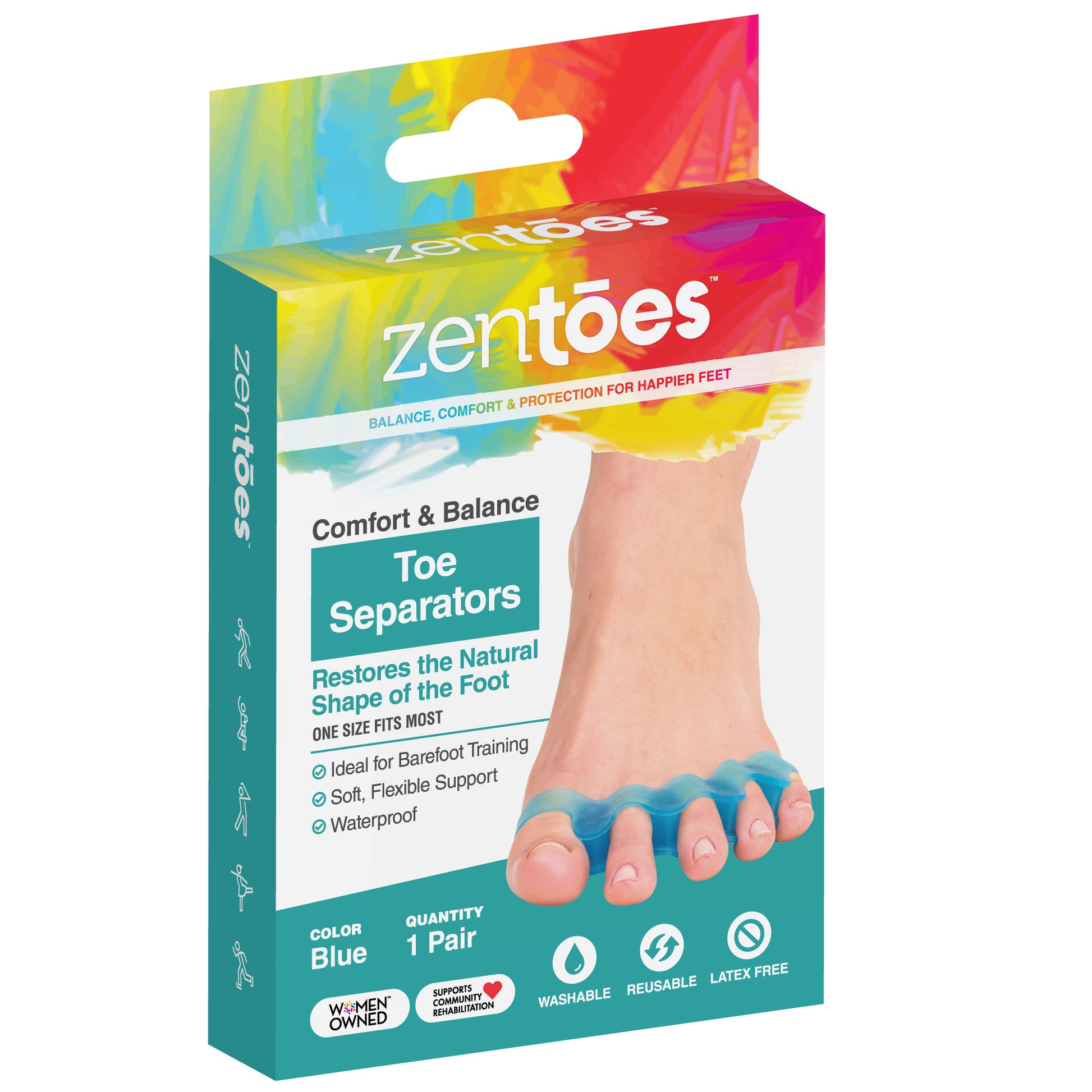 - Comfortable Gel Toe Separator: Soft, stretchy material makes ZenToes "all toe" separators ideal for use during yoga and other barefoot training exercises. They are also comfortable to wear under socks or inside wide fitting shoes and can be hand washed in warm soapy water, air dried, and reused over and over.