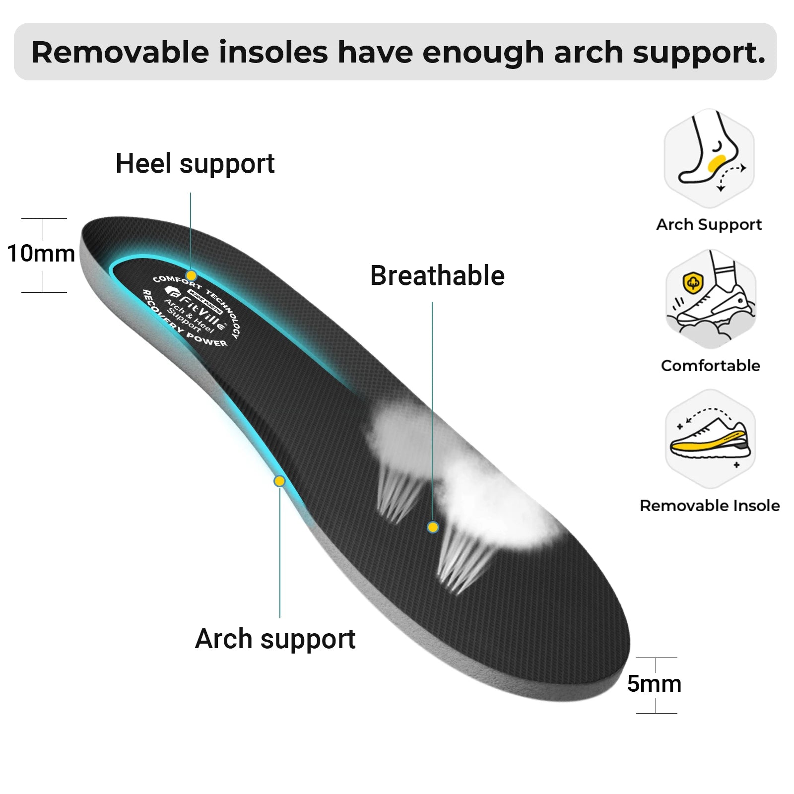 FitVille PropelCore™ soles adapt to your unique foot contour, featuring a dual-density Comfort+ EVA midsole and an integrated pad for all-day ease and optimal body alignment, ensuring impeccable heel, arch, and ankle support.