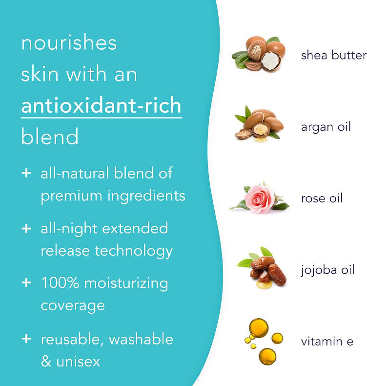 Sleep On It™ are therapeutic socks infused with a soft, scientifically formulated moisturizing gel that boosts skin’s nightly regenerative processes. These socks release an antioxidant-rich blend of shea butter, argan oil, rose oil, jojoba oil and vitamin E over the entire foot - so you wake up to feet that feel smoother, more supple and well-rested.