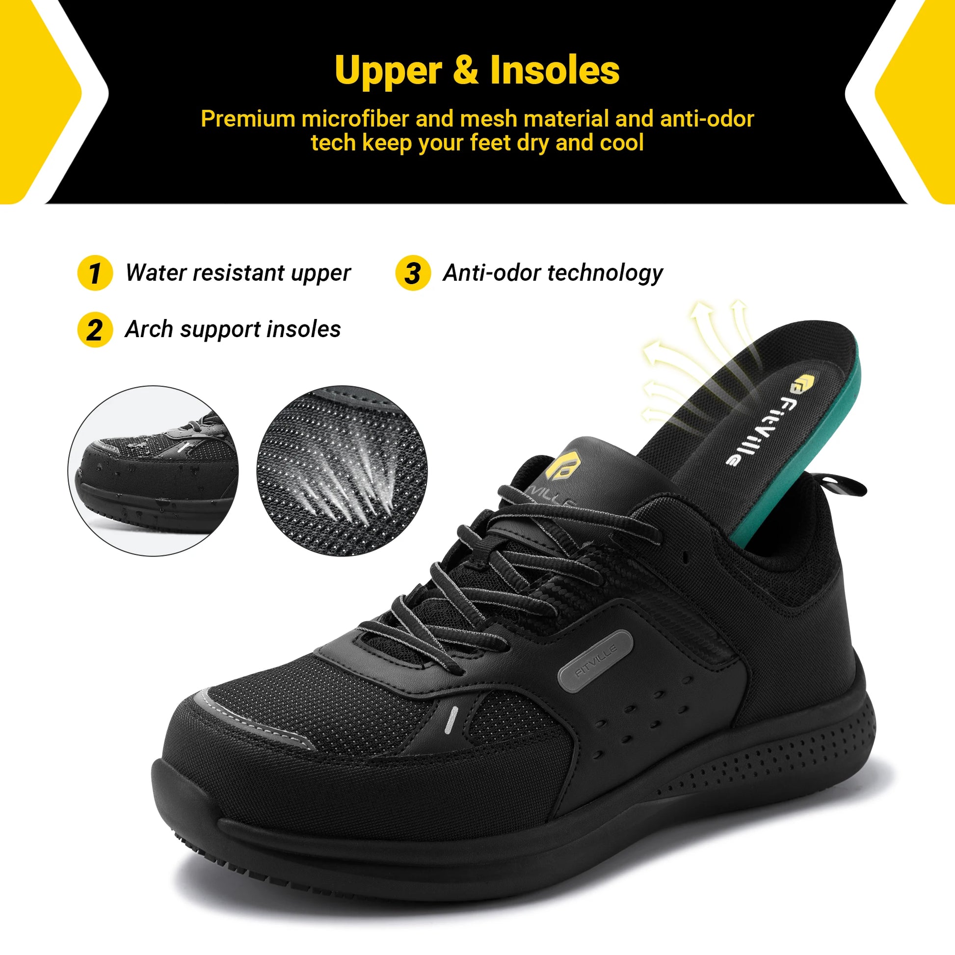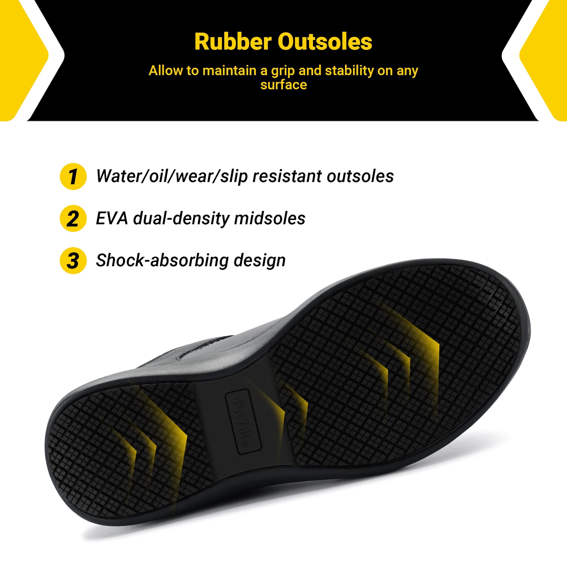 High-density cotton insoles provide stability and alleviates foot pressure during extended work shifts. Designed with a breathable knit surface, your feet will stay healthy and dry throughout the day.