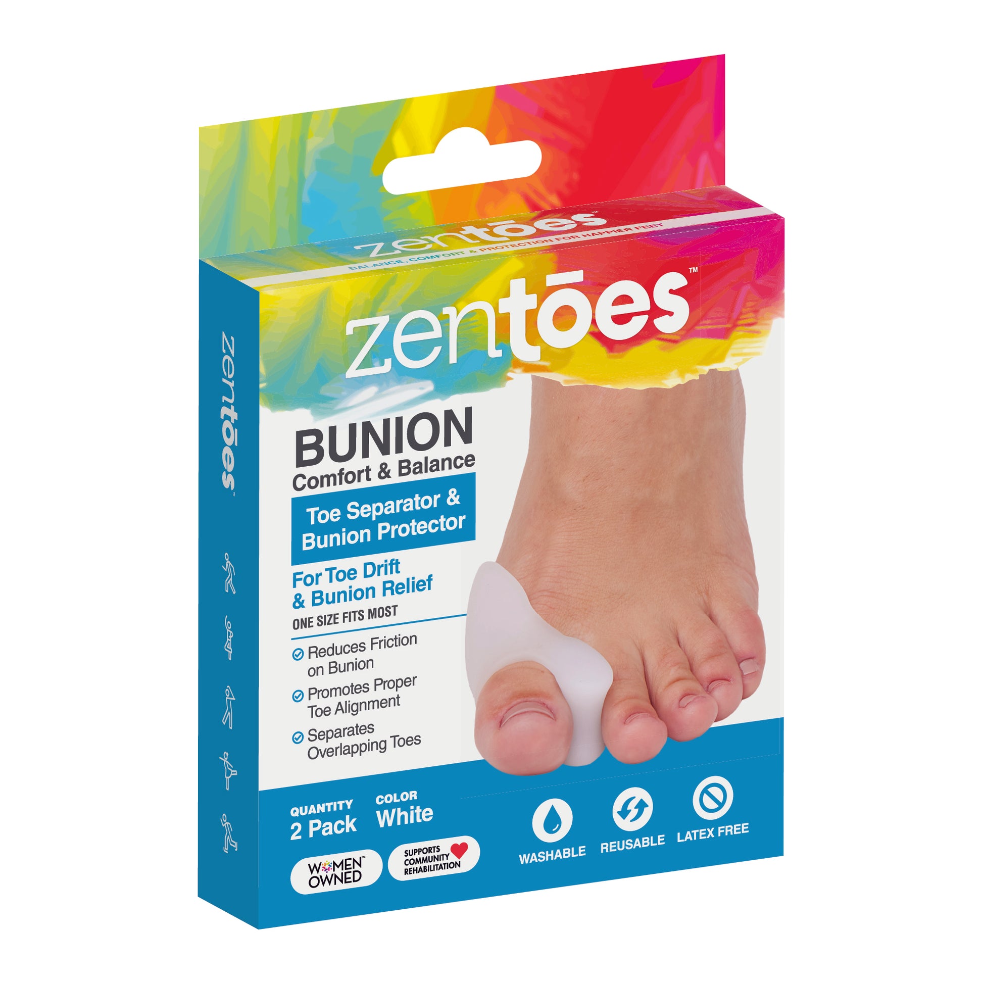 With the ZenToes Bunion Corrector & Toe Separator, you don't have to worry about your bunion protector slipping off and leaving your bunion exposed. This reliable, durable bunion protector can be worn daily and is designed to fit everyone.